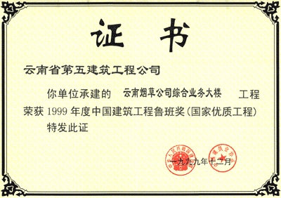 昆明市第一人民醫院外科住院大樓—2005年度“AAA級安全文明標準化誠信工地”